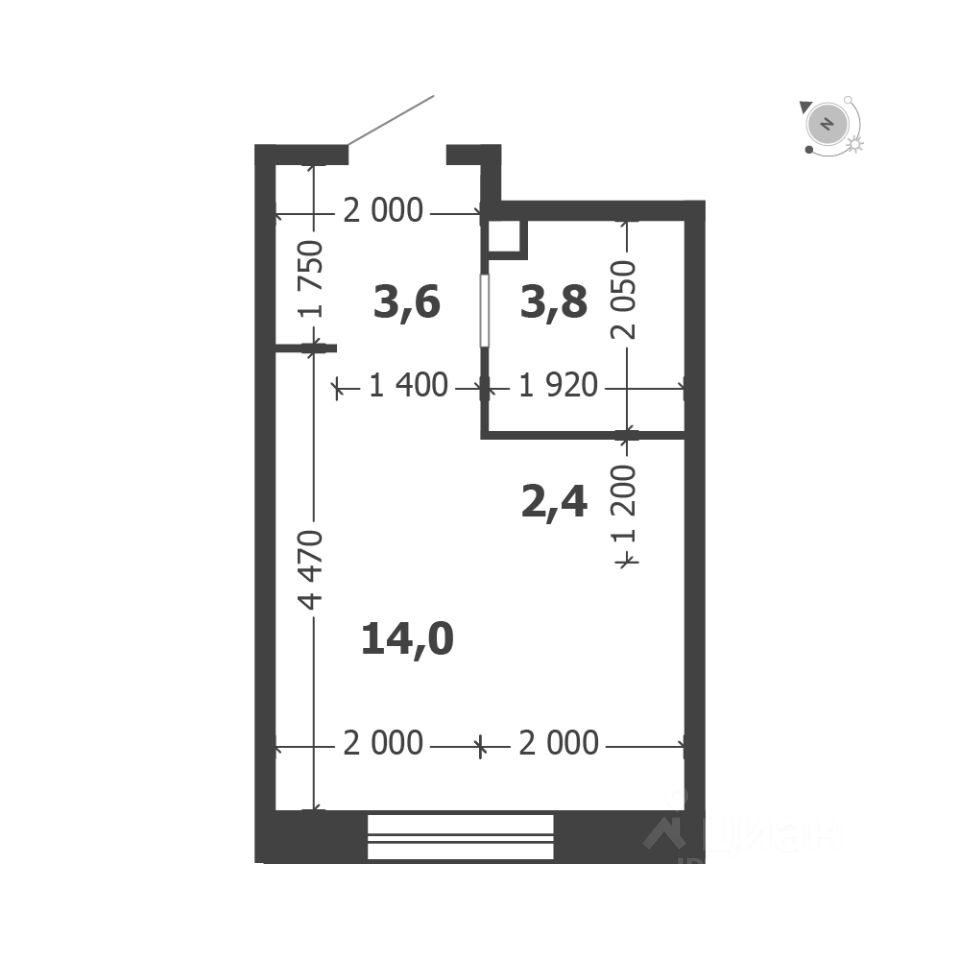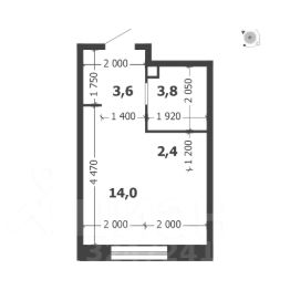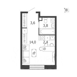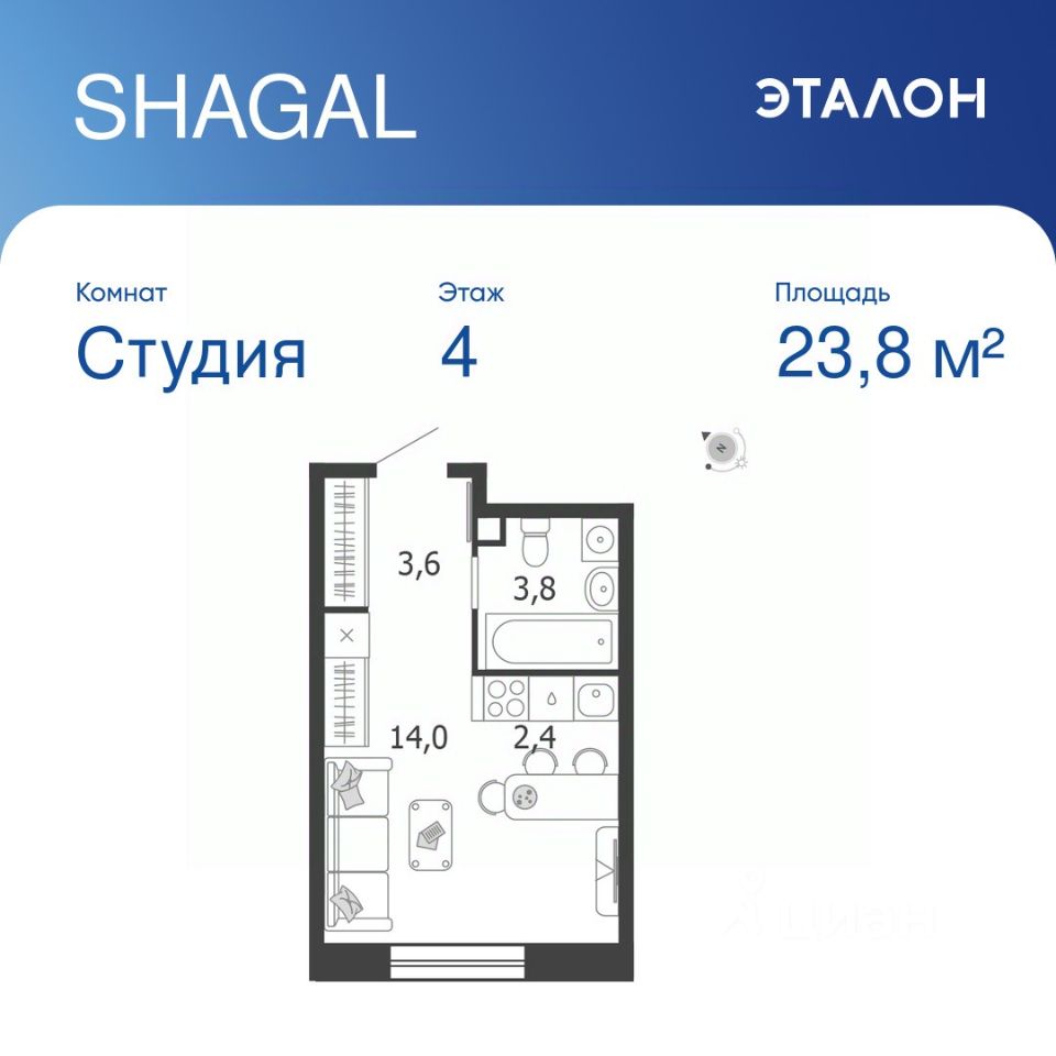 Общая площадь квартиры — 23.8 кв. м, этаж 4 из 18.