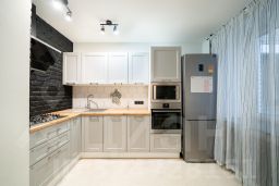 Кухня - здесь уже есть все что необходимо: посудомоечная машина Siemens , встроенный духовой шкаф и СВЧ Gorenje, холодильник Samsung, вытяжка и газовая панель.