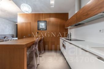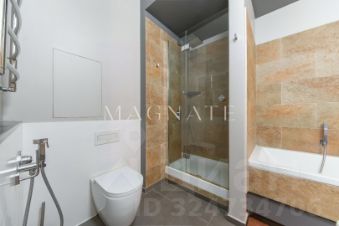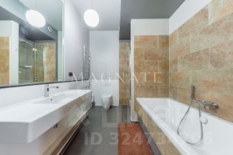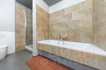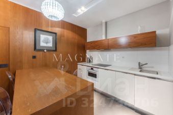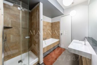 При отделке использованы дорогостоящие материалы: натуральная паркетная доска, сантехника премиум-класса Gessi, краска Benjamin Moore, мебель из массива на заказ, отделка стен шпоном и декоративной штукатуркой.