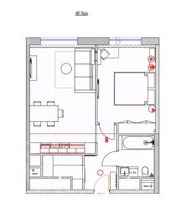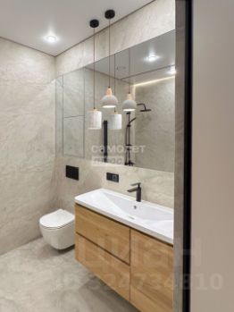 Квартира полностью готова к проживанию: мебель, техника, текстиль - все остается. Установлены кондиционеры в обеих комнатах. Санузел совмещенный. Сделана просторная гардеробная. Много сценариев освещения: лампы, бра, подсветки.