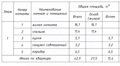 Общая площадь 43,1 кв м: две изолированные комнаты 11,6 кв м и 16,1 кв м, в одной из комнат просторный встроенный шкаф-купе, кухня составляет 6 кв м, совмещенный с/у 3,2 кв м, коридор 6,5 кв м.