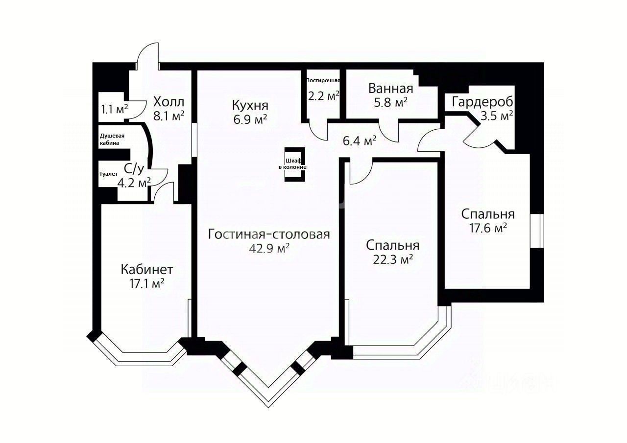 Общая площадь 138 кв. м, без учета лоджий 127.6 кв. м.