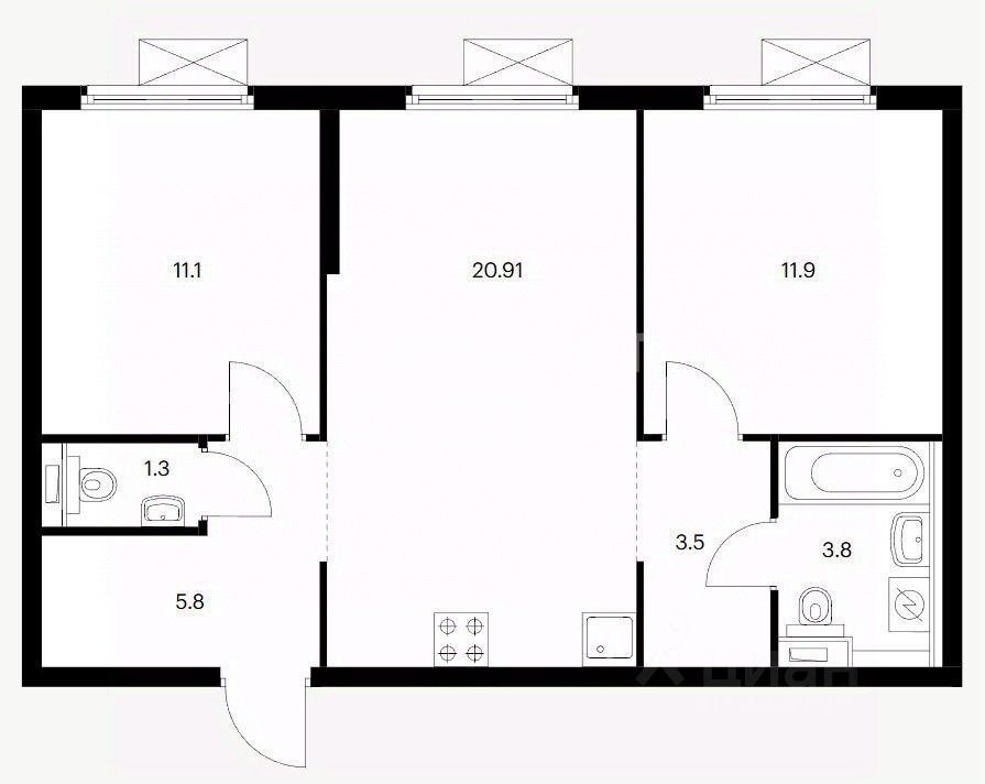 Общая площадь: 58.3 м2