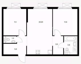 Комнаты: 11.1 м2 и 11.9 м2