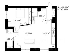 Продается 1-комн. квартира, 70,4 м²