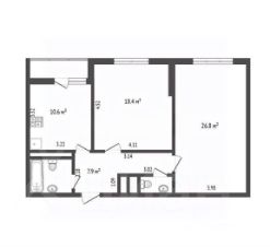 Планировка: 2 изолированные комнаты (18,4 и 27 м²)