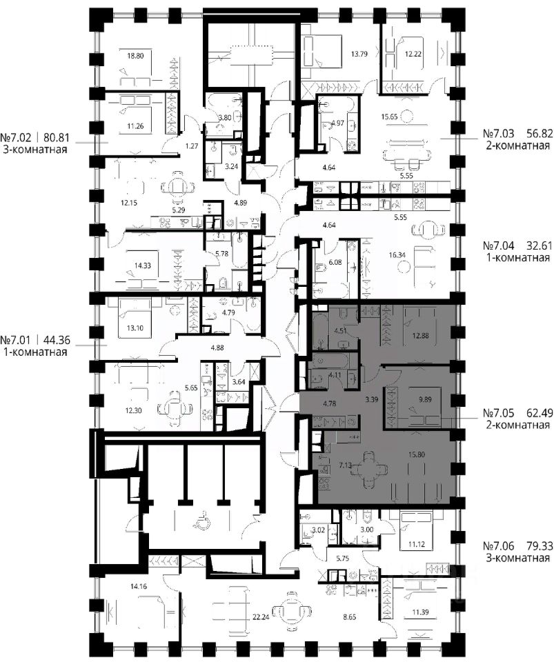 Продаётся 2-комнатная квартира общей площадью 62.49 м² с предчистовой отделкой в ЖК City Вау, квартале North, на 7-м этаже 27 этажного дома.
