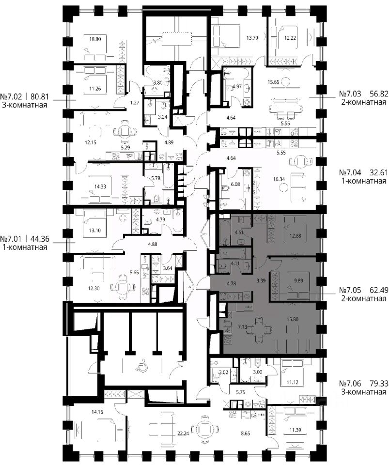 Продаётся 2-комнатная квартира общей площадью 62.49 м² с предчистовой отделкой в ЖК Сити Бэй, квартале Норс, на 7-м этаже 27 этажного дома.