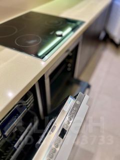 ОБОРУДОВАНИЕ: Варочная панель и духовой шкаф Neff,цельная кварцевая столешница Ligron, вытяжка Kuppersbusch, посудомоечная машина и холодильник Siemens, 2 инверторных кондиционера Daikin, входная дверь Guardian, итальянская мебель Tomasella