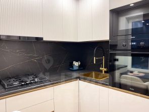 Вся мебель делалась по индивидуальному эскизу, на заказ! Дорогие отделочные материалы, столешница из камня, керамогранит, премиальный кварцвинил на полу, которому не страшен даже потоп. Пол с подогревом в ванной и на балконе. Разнообразные сценарии освещения.