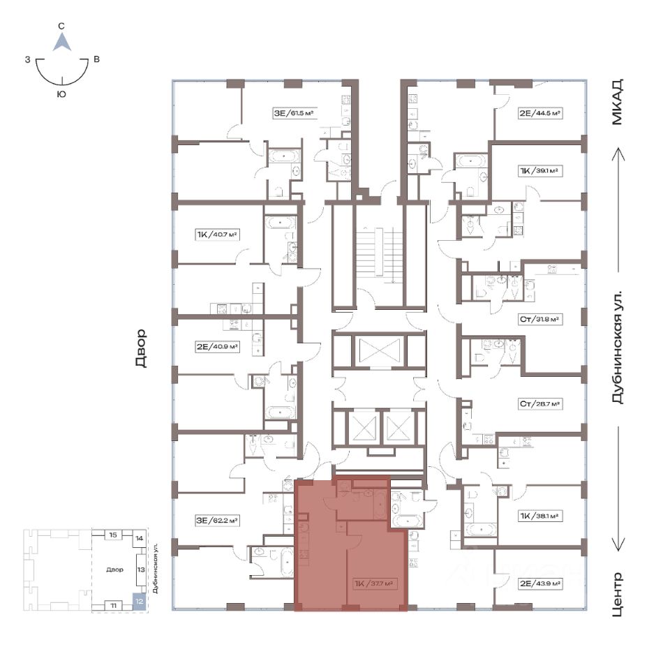 Однокомнатная квартира для молодой пары или начинающего специалиста. -В квартире предусмотрено смешанное остекление -Дополнительные окна в комнатах наполнят квартиру светом и теплом -Кухня-гостиная с зонированной кухней и пространством для отдыха -Приватная изолированная спальня с зоной гардеробной -Удобная ниша в коридоре для системы хранения