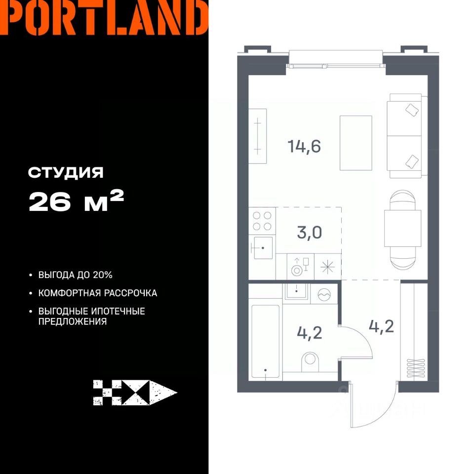 Продаётся студия, 19 этаж в жилом комплексе бизнес-класса Portland от девелопера FORMA. ЖК расположен на берегу Москвы-реки в северной части района Печатники в акватории Южного речного порта.