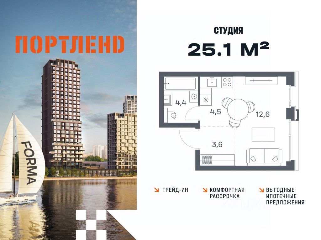 Продаётся студия, 14 этаж в жилом комплексе бизнес-класса ПОРТЛЕНД от девелопера FORMA. ЖК расположен на берегу Москвы-реки в северной части района Печатники в акватории Южного речного порта.