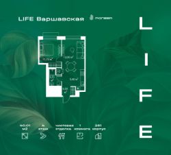 В районе Москворечье-Сабурово продается 1-комнатная квартира площадью 40.01 м². Она расположена на 4 этаже в 261 корпусе нового жилого квартала LIFE Варшавская.