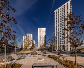 Концепция жилого квартала создана ведущими архитектурными бюро. Структуры малоэтажных кварталов дополняются высотными башнями-доминантами. Такой тип застройки позволил сформировать освещенную приватную территорию.