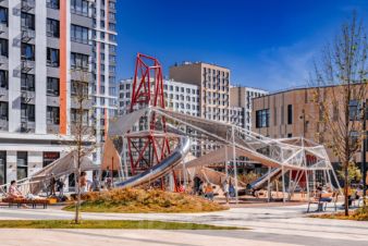 Богатая инфраструктура — это визитная карточка проекта. На территории работают детский сад на 160 мест и школа на 900 мест с IT-полигоном и мультифункциональным спортивным стадионом. В квартале разместились пешеходный бульвар, игровой плейхаб "Змейка", спортивный кластер с полями для футбола и волейбола, площадка для выгула животных. На первых этажах жилых домов открыты магазины, кафе и рестораны, салоны красоты, арт-галереи, сервисы бытовых услуг, медицинские центры.