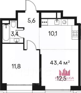 Общая площадь квартиры 43.4 м². Расположенная на 2 этаже 19-этажного монолитно-кирпичного дома, она сочетает в себе уют, функциональность и престижное расположение, с уютным видом во двор.