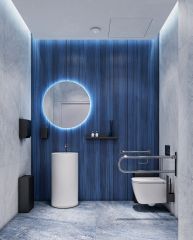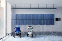 - Лобби по индивидуальному дизайн проекту от европейского бюро Вlank Architects: лаунж-зоны, ресепшен, колясочная, помещение для мытья лап животным после прогулки