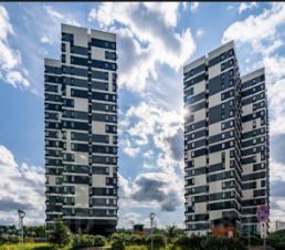 Комплекс включает в себя пять корпусов три из которых заселены, с прогулочной парковой зоной на стилобате между ними. Во всех подъездах спроектированы уютные лобби-зоны. Круглосуточная охрана, подземный паркинг, также достаточное количество парковочных мест рядом с ЖК.