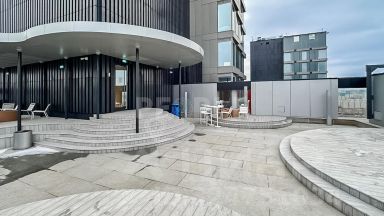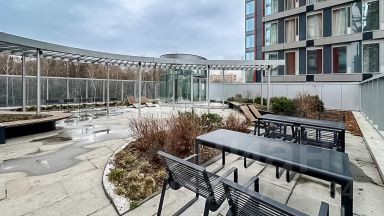 Общее Дизайнерское лобби с охраной на 2 башни, где расположена зона ресепшн, охрана. В лобби есть детская зона, зона ожидания, колясочная, зона ухода за животными. На крыше стилобата расположена еще одна общая зона отдыха для жильцов. Во дворе есть воркаут зона, игровая площадка с горками и песочницей.