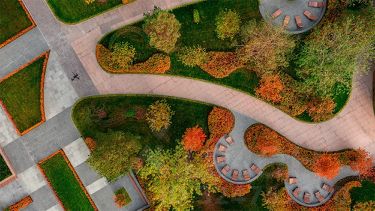 Частный парк с большим фонтан, детскими площадками и красивым ландшафтным дизайном, доступный только для резидентов.