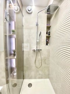 ВАННАЯ КОМНАТА: установлена система "Умный дом", фиксирующая показания счетчиков воды для передачи в соответствующие организации, контроль протечек и автоматическое отключение воды в случае их обнаружения, фильтры грубой очистки воды, индивидуальный водонагреватель на период сезонного отключения горячей воды. Испанская плитка и раковина Porcelanosa. Инсталляция - Geberit, унитаз - Laufen. Есть гигиенический душ.
