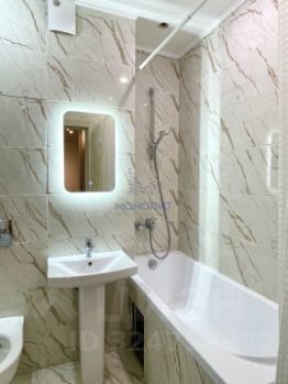 Качественная сантехника,на полу керамогранит, система теплый пол.Окна в кухни-гостиной в панорамными в пол окнами.