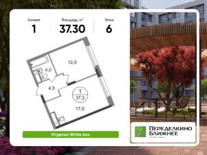 Общая площадь квартиры - 37,3 кв. м, этаж 6 из 17.