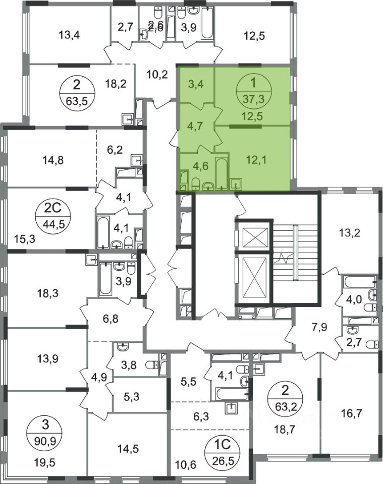 - в каждой секции 2 лифта: 1 пассажирский, 1 грузовой