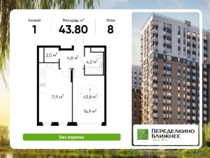 Общая площадь квартиры - 43,8 кв. м, этаж 8 из 17.