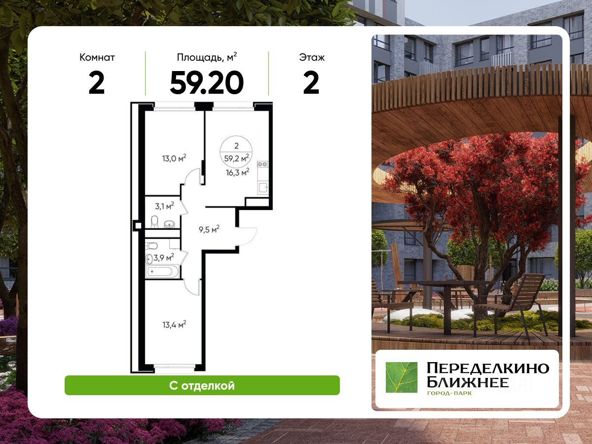 Продается двухкомнатная квартира с отделкой в 18 фазе города-парка "Переделкино Ближнее".