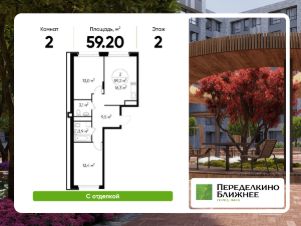 Общая площадь квартиры - 59,2 кв. м, этаж 2 из 17.