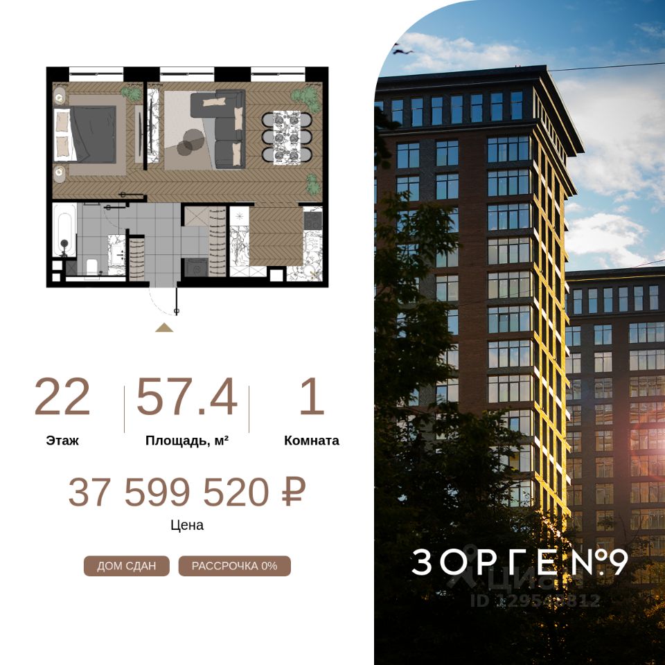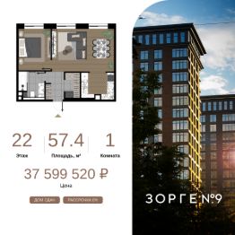 "Зорге 9" — готовые апартаменты бизнес-класса на Ходынке. 10 минут до Москва-Сити. Архитектура: 3 современных корпуса с фасадами в стиле архитектуры Нью-Йорка и с сервисами премиальных отелей, высотой до 23 этажа. Строгие линии, панорамные окна создают ощущение неподдельной роскоши и комфортной жизни в сердце мегаполиса. Проект награжден авторитетной премией European Property Awards. Резиденции: Свободная планировка, небольшая глубина этажа, огромные панорамные окна в пол до 3,6 м и высота потолков до от 3,3 до 4,3 м позволяют реализовать самые смелые концептуальные идеи и создать идеальный интерьер с учетом всех пожеланий. Вдохновляющие виды на город украсят ваш апартамент лучше любой картины. Есть возможность приобретения дизайн-проекта и полной меблировки апартаментов от партнеров девелопера. Расположение: 3 мин. пешком до парка Березовая роща 10 мин. пешком до Ходынского поля 10 мин. до ТЦ Авиапарк 30 минут до Шереметьево 10 мин до Москва-Сити или 1 станция до Москва-Сити 5 минут до ТТК 4 станции метро в шаговой доступности: 6 мин м. Полежаевская (фиолетовая ветка) 7 мин МЦК Зорге (МЦК) 7 мин м. Хорошевская (голубая ветка) 10 мин МЦК Хорошёво (МЦК) Благоустройство: Собственный парк 2 га с амфитеатром и поющими фонтанами. В парке высажено 136 деревьев и более 11 000 кустов и мелких растений из немецких питомников. Площадка для йоги и воркаут-зона со спортивными площадками. Теннисные столы и детский плейхаб Две башни Авторское гранд-лобби В лобби предусмотрена лаундж-зона, чайная с камином, комната для хранения велосипедов и колясок. Доступ по системе FACE ID. В отделке лобби и лифтовых холлов использован декоративный камень итальянского бренда Atlas Concorde Пентхаусы На верхнем уровне комплекса расположены роскошные просторные пентхаусы с высотой потолка до 4,2 метра и панорамными окнами до 3,6 метров, открывающими великолепные виды на столицу. Пентхаусы с выходами на собственные приватные террасы на кровле, площадью от 150 кв. м являются жильем high-уровня, демонстрирующим высокий статус владельца.