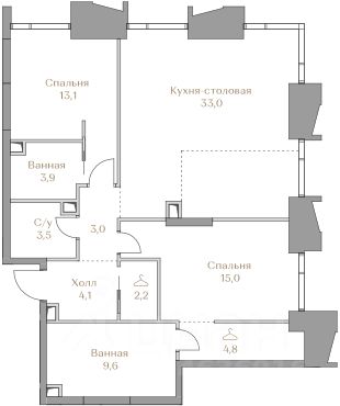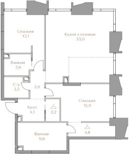 Представляем квартиру в клубном доме Хайлайн 3 с 2 спальнями площадью 92,2 м² на 3 этаже.