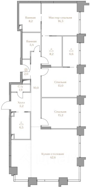 Представляем квартиру в клубном доме Waterfront 5 с 3 спальнями площадью 143,1 м2 на 8 этаже.