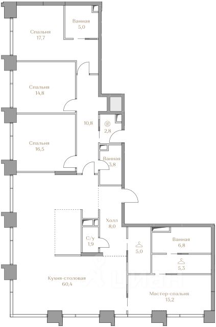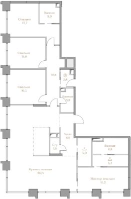 - Мастер-спальня с гардеробной и ванной комнатой