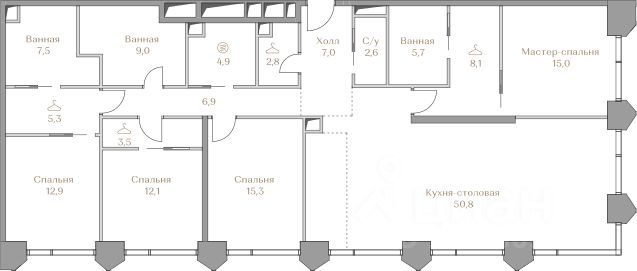 В клубном доме Вотерфронт 1 проекта КОЛЛЕКЦИЯ ЛУЖНИКИ в Хамовниках продаётся коллекционная премиальная квартира с 4 спальнями площадью 169,4 м2 на 15 этаже.