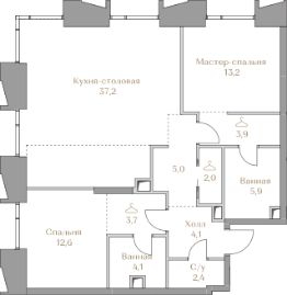 В клубном доме Хайлайн 2 проекта КОЛЛЕКЦИЯ ЛУЖНИКИ в Хамовниках продаётся коллекционная премиальная квартира с 2 спальнями площадью 94,1 м2 на 9 этаже.
