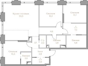 В клубном доме Хайлайн 2 проекта КОЛЛЕКЦИЯ ЛУЖНИКИ в Хамовниках продаётся коллекционная премиальная квартира с 3 спальнями площадью 111 м2 на 15 этаже.