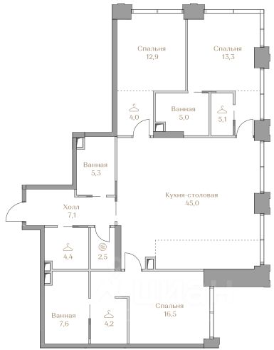 Представляем квартиру в клубном доме Гарден 3 с 3 спальнями площадью 132,9 м2 на 5 этаже.