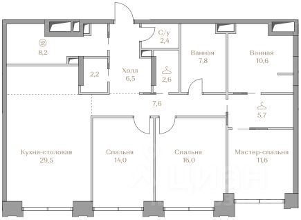 Представляем квартиру в клубном доме Гарден 3 с 3 спальнями площадью 124,7 м2 на 15 этаже.