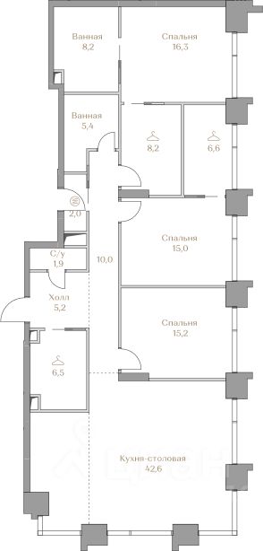 - Мастер-спальня с гардеробной и ванной комнатой