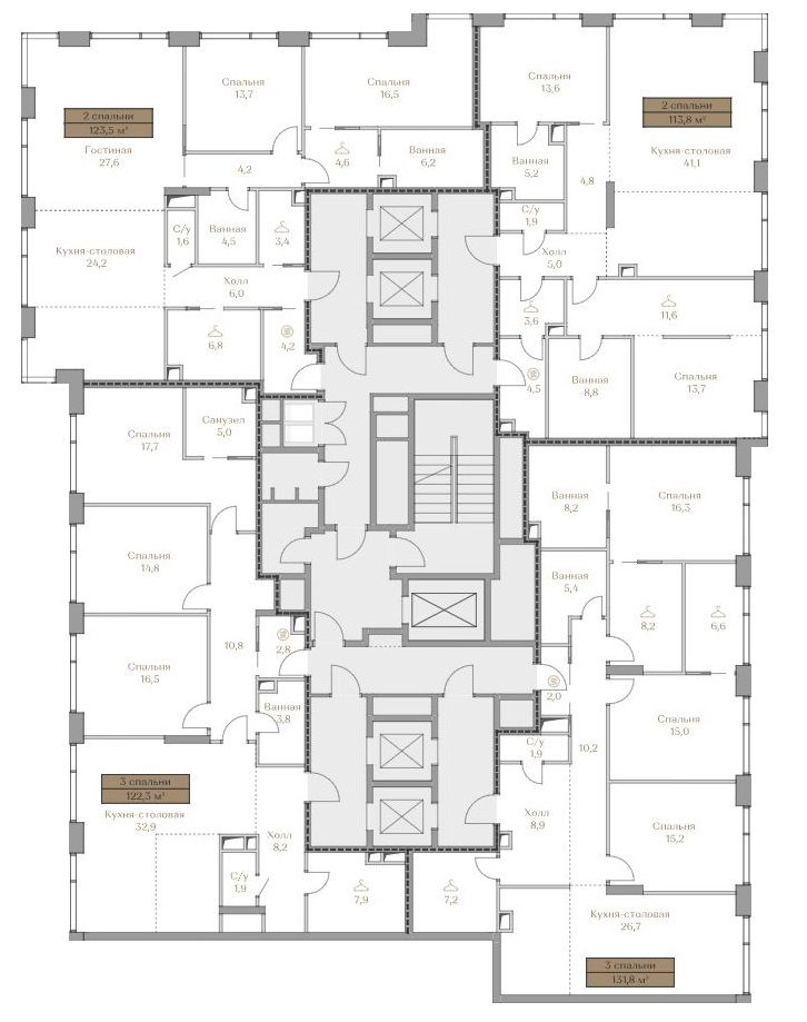 - Изолированная зона на этаже для технических служб и сбора мусора