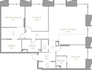 - Мастер-спальня с гардеробной и ванной комнатой