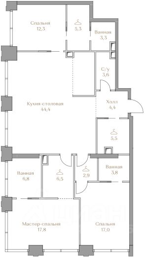 - Мастер-спальня с гардеробной и ванной комнатой
