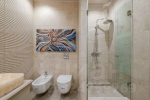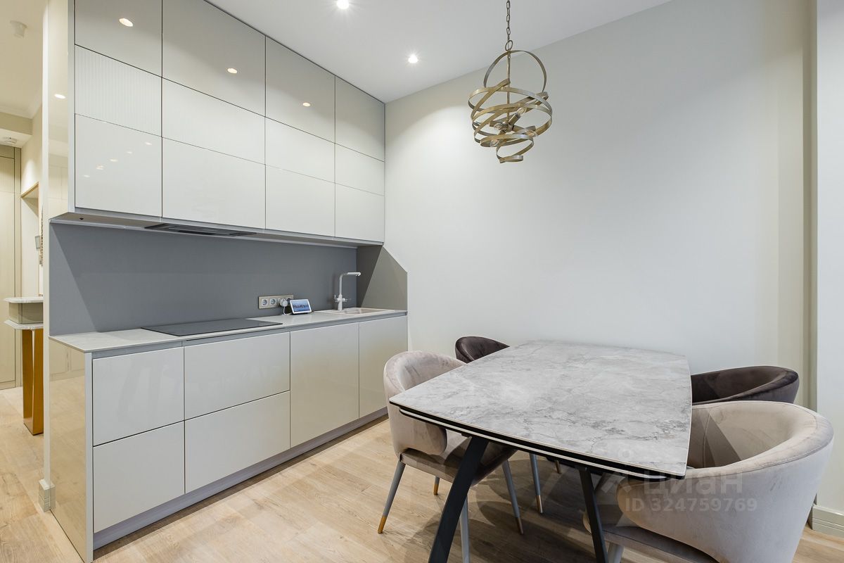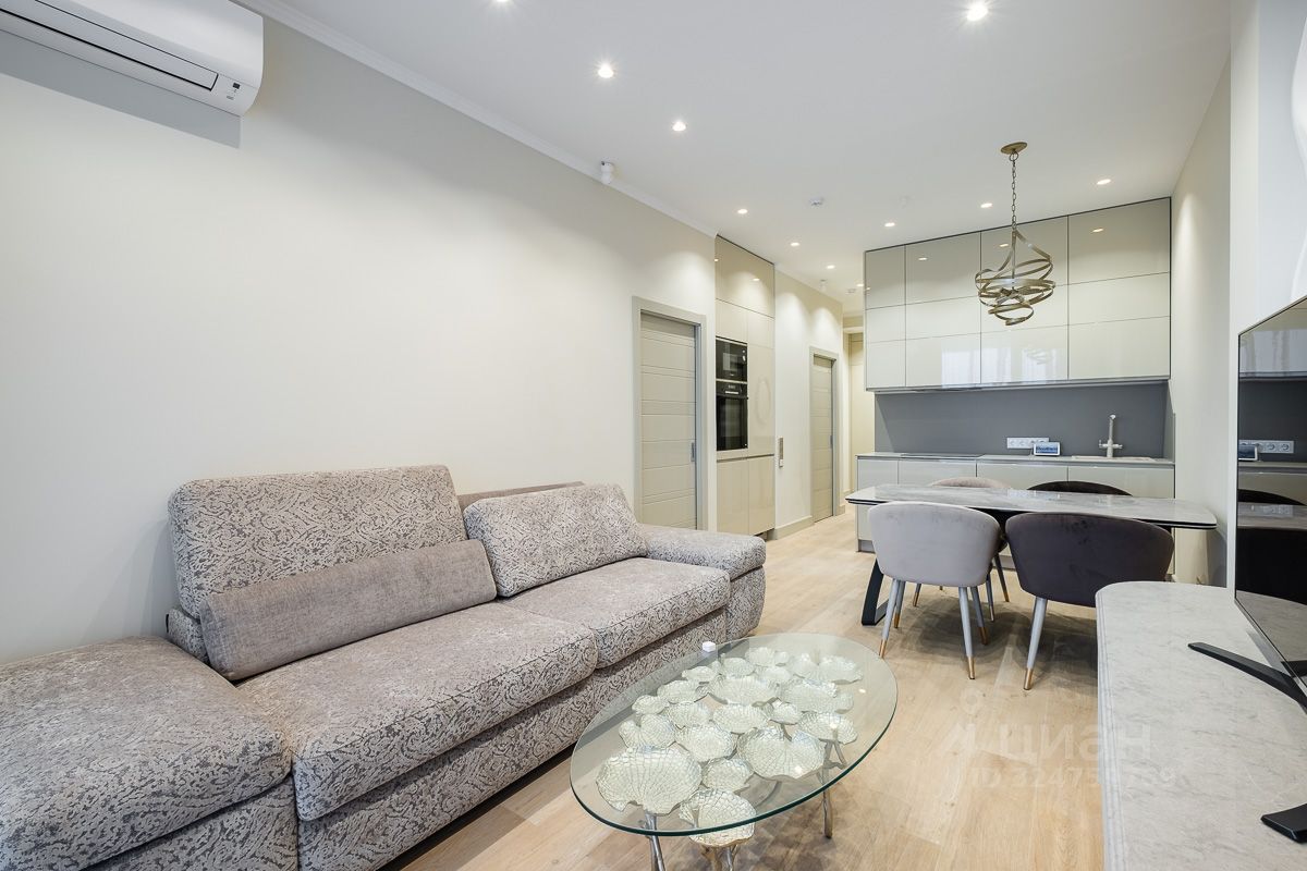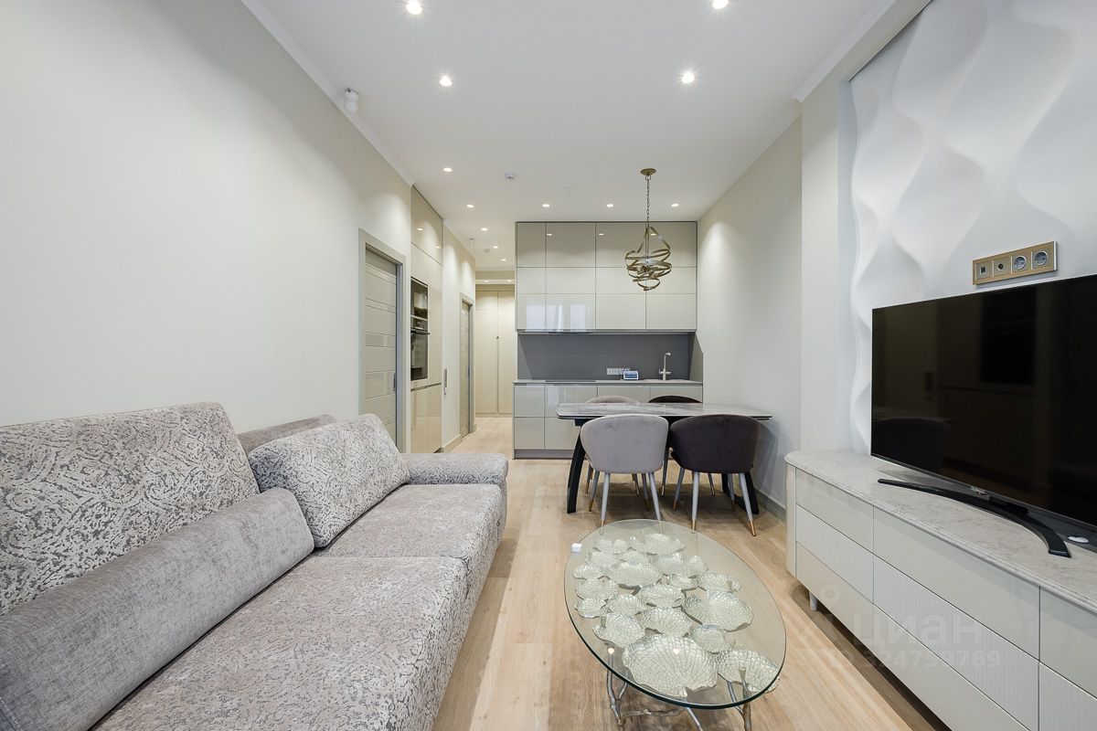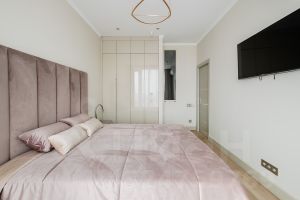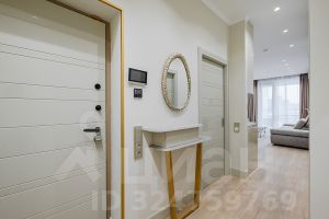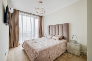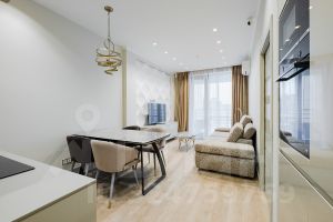 Планировка: кухня-гостиная, спальня, рабочий кабинет, два полноценных санузла. В квартире выполнен дизайнерский ремонт из качественных материалов. В кухне установлена техника Bosch. Вся квартира оснащена системой умный дом. Окна выходят во внутренний двор. Балкон с видом на двор и панораму города. Комплекс оборудован пропускной системой, консьерж сервисом 24/7 и подземным паркингом на -2 этажа.