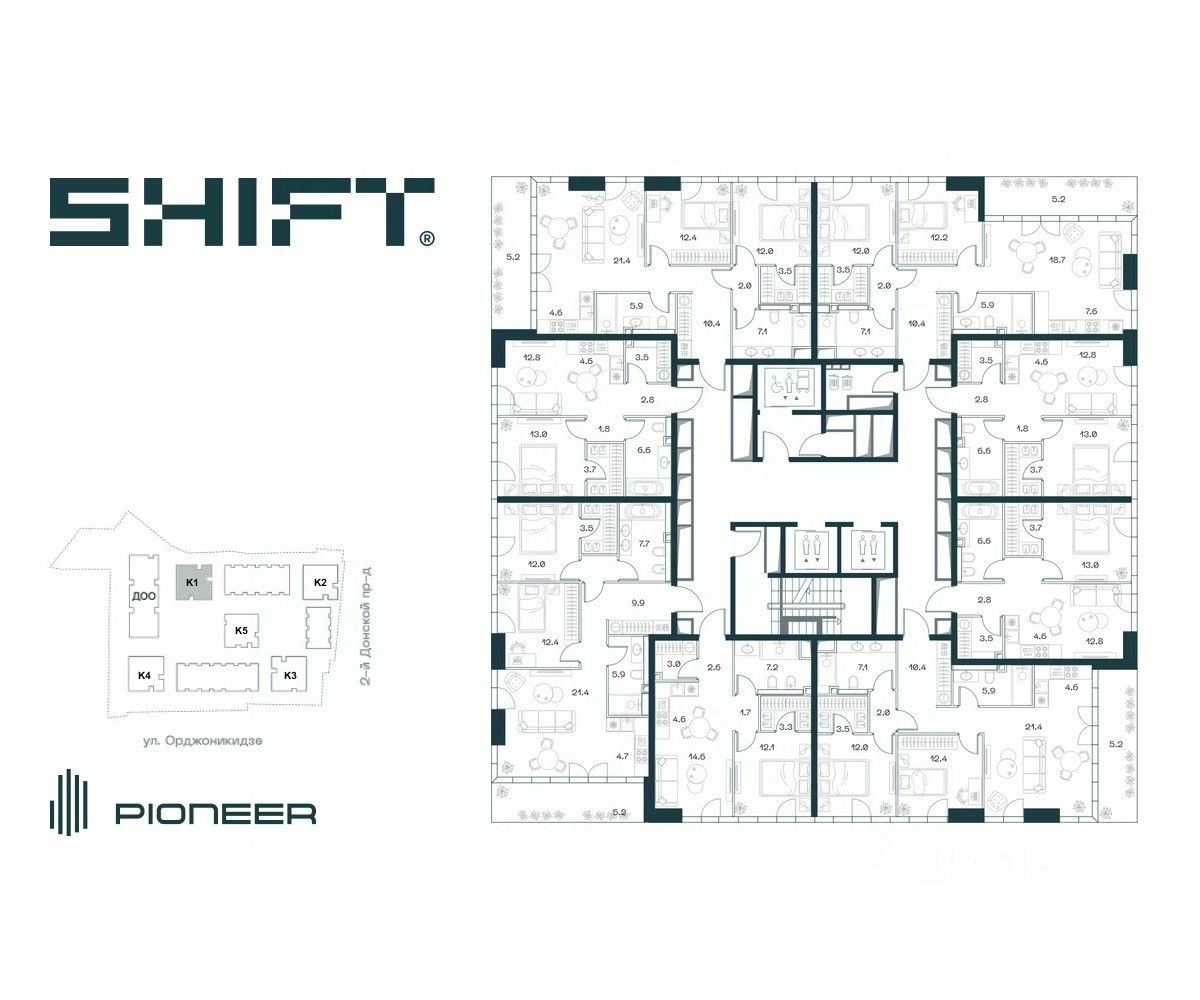 SHIFT - новый премиальный проект от девелопера PIONEER в Донском районе, в 300 м от Нескучного сада.