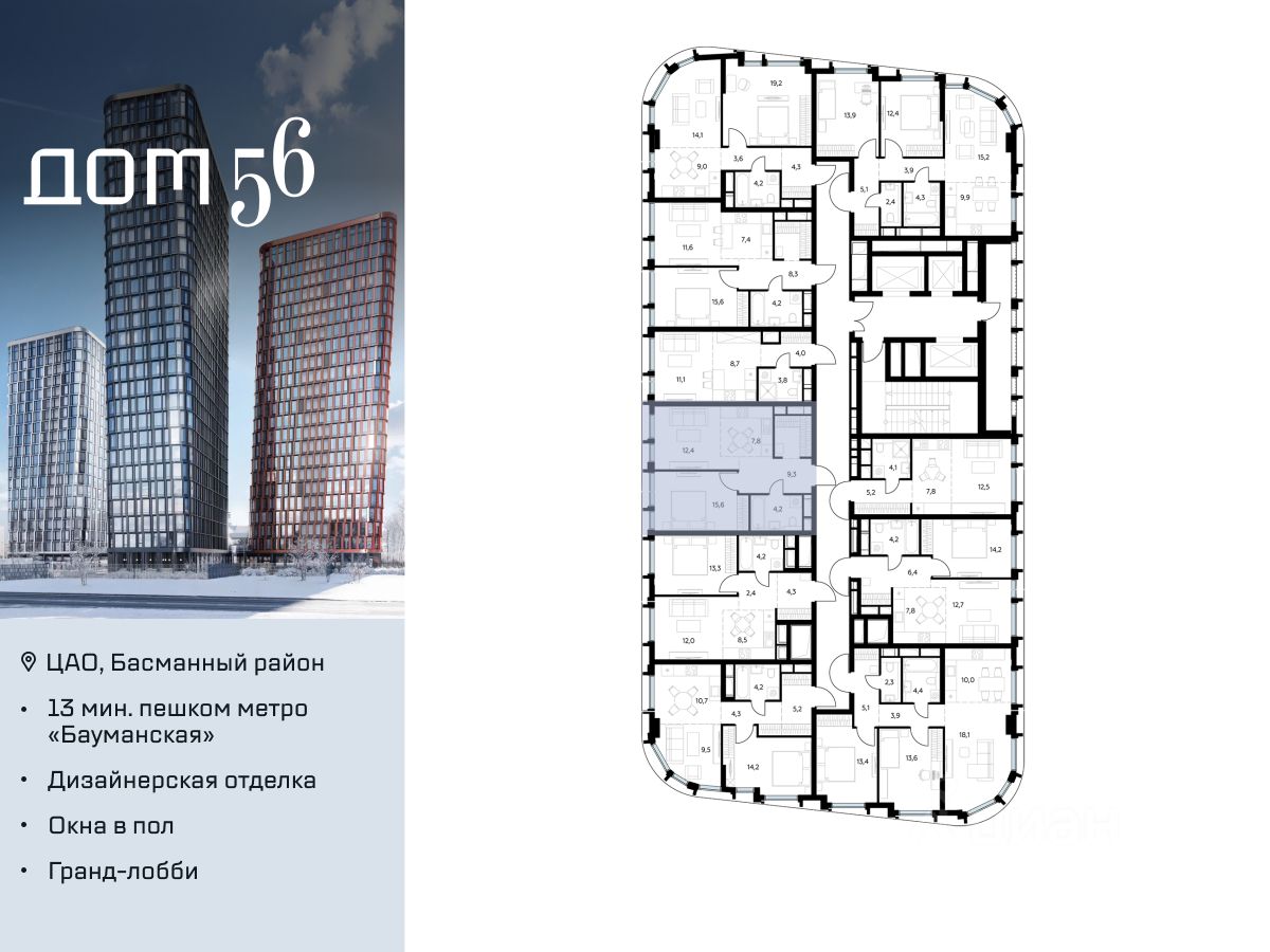 "Дом 56" - расположен в Басманном районе на ул. Фридриха Энгельса, всего в 12-15 минутах пешком от станций метро "Бауманская" и "Электрозаводская".