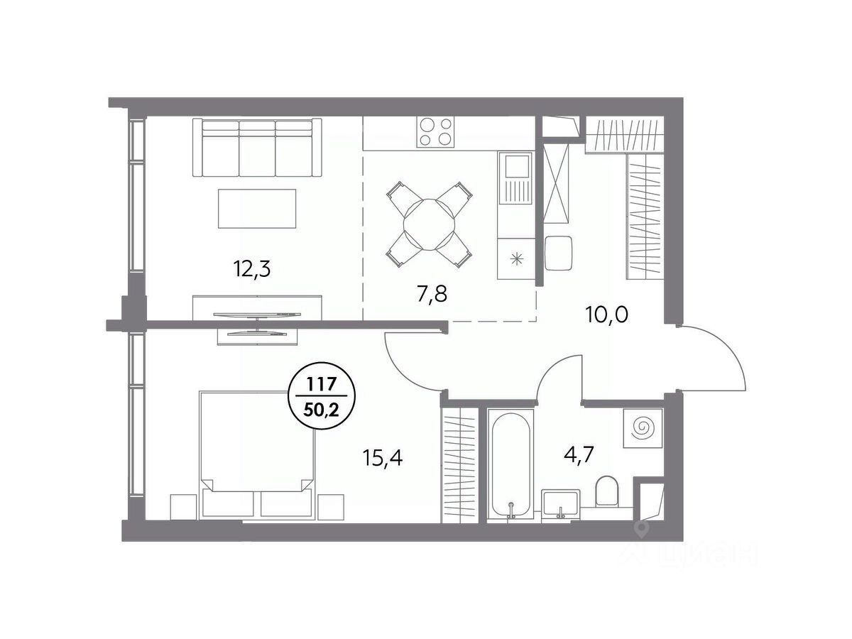 В премиум-квартале "Дом 56" на Бауманской напрямую от девелопера ГК "Галс-Девелопмент" представлена 1-комнатная квартира на 1 этаже общей площадью 50.20 м².