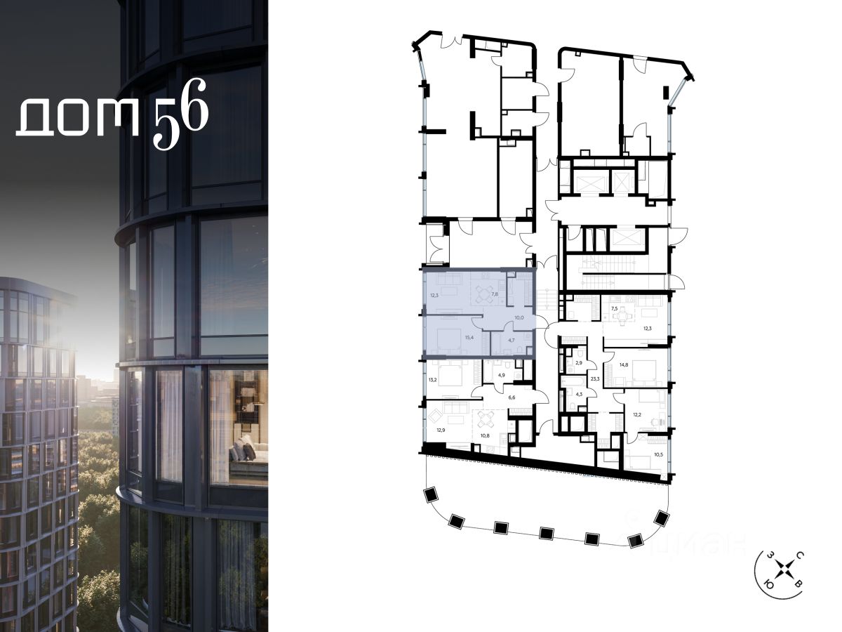 Архитектурный стиль "Дома 56" - параметрический минимализм. Футуристические фасады квартала с "эффектом закручивания" словно вращаются вокруг своей оси. Динамичный образ башен дополняет эффектное остекление - окна в пол будут в каждой квартире.
